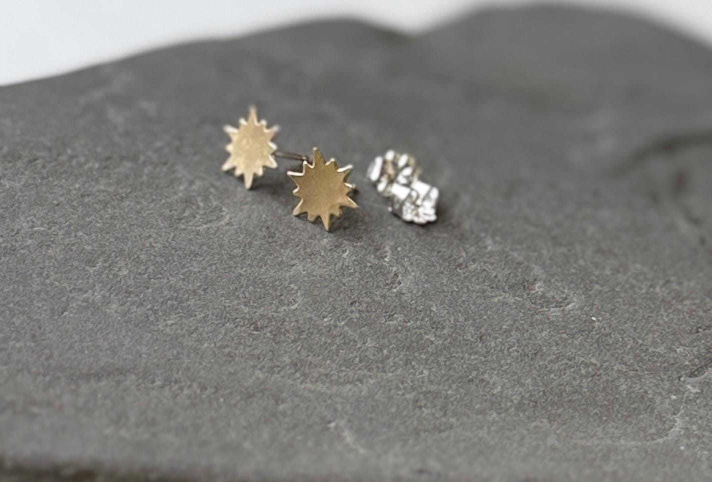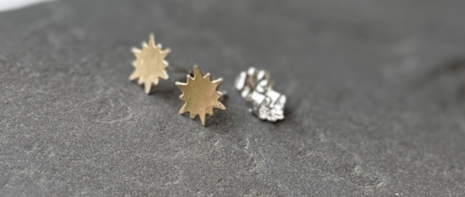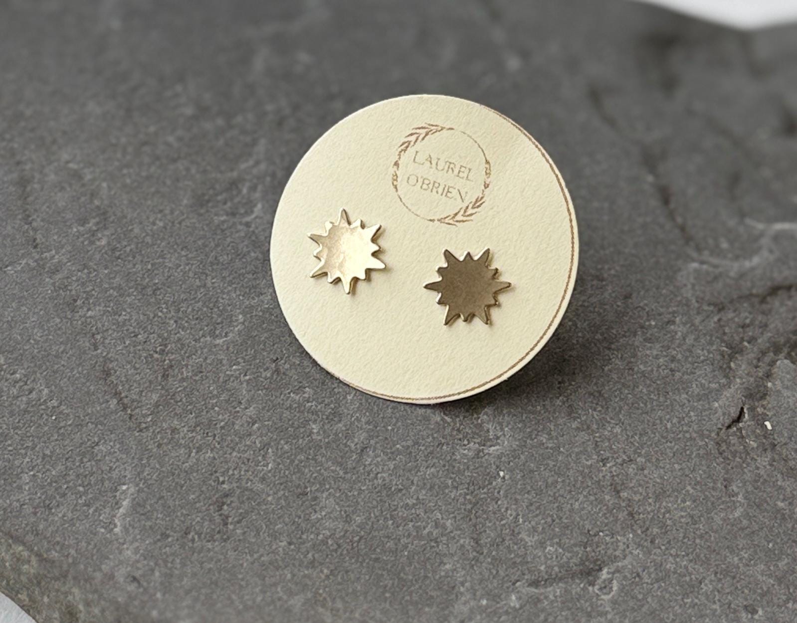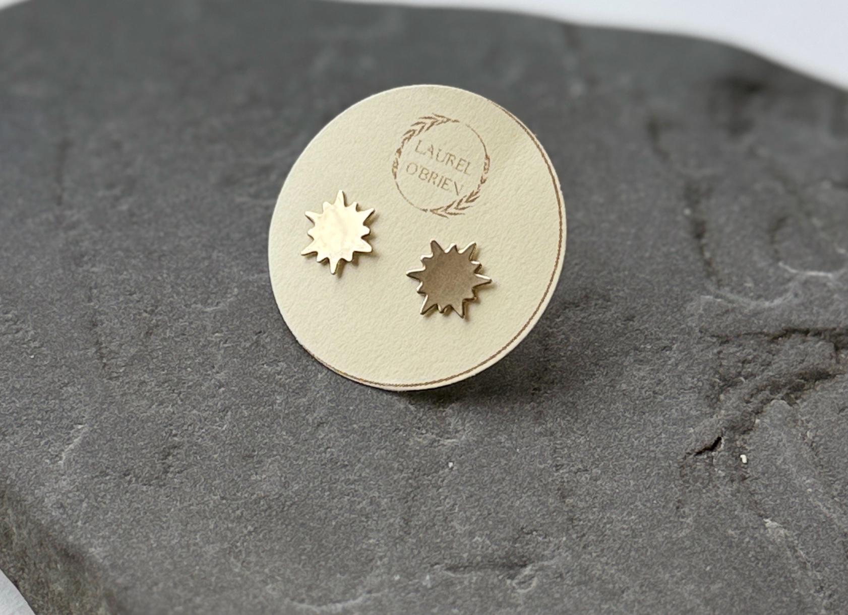 Brass Sunburst Stud Earrings, Gold Posts, Celestial Jewelry