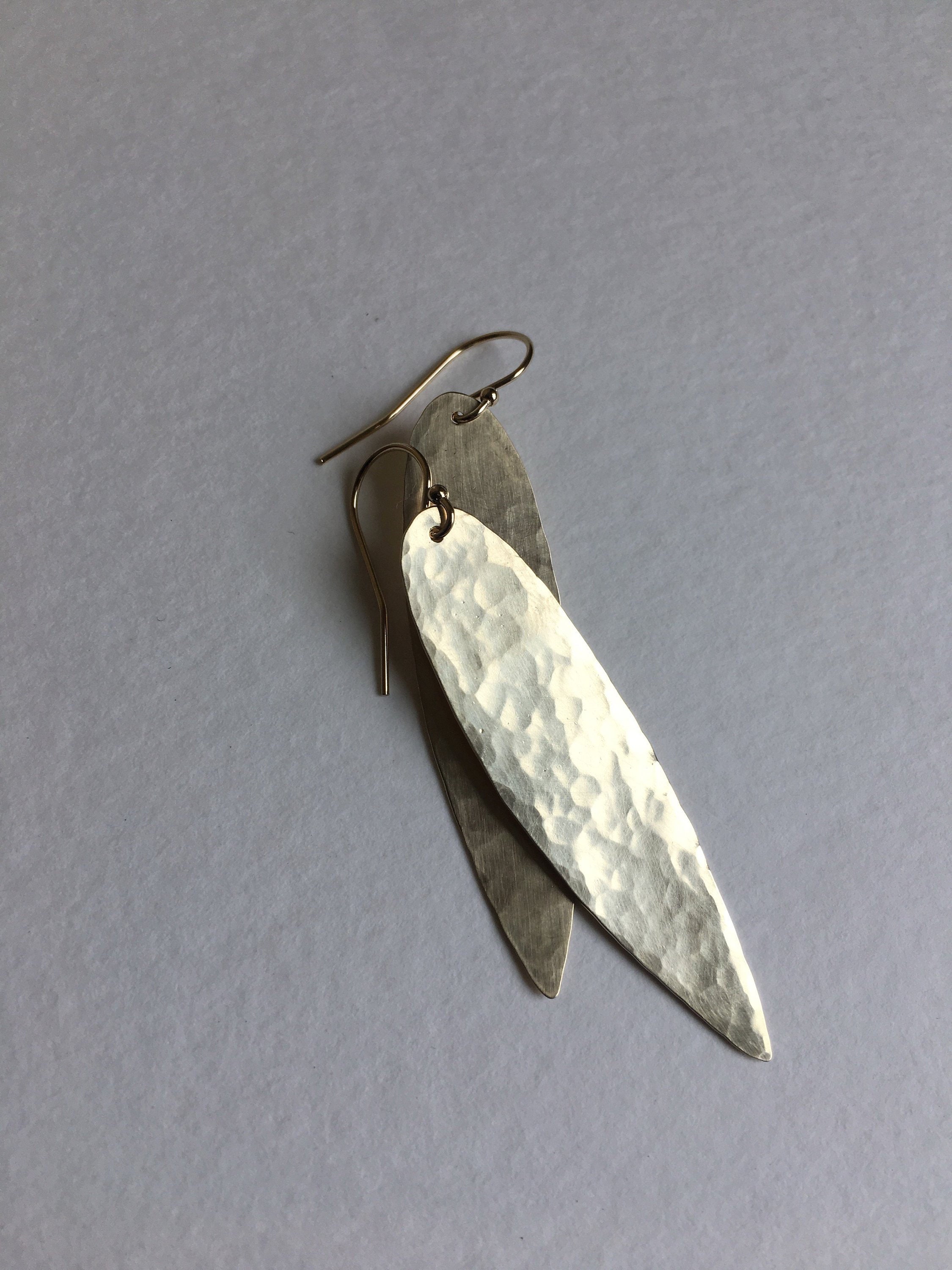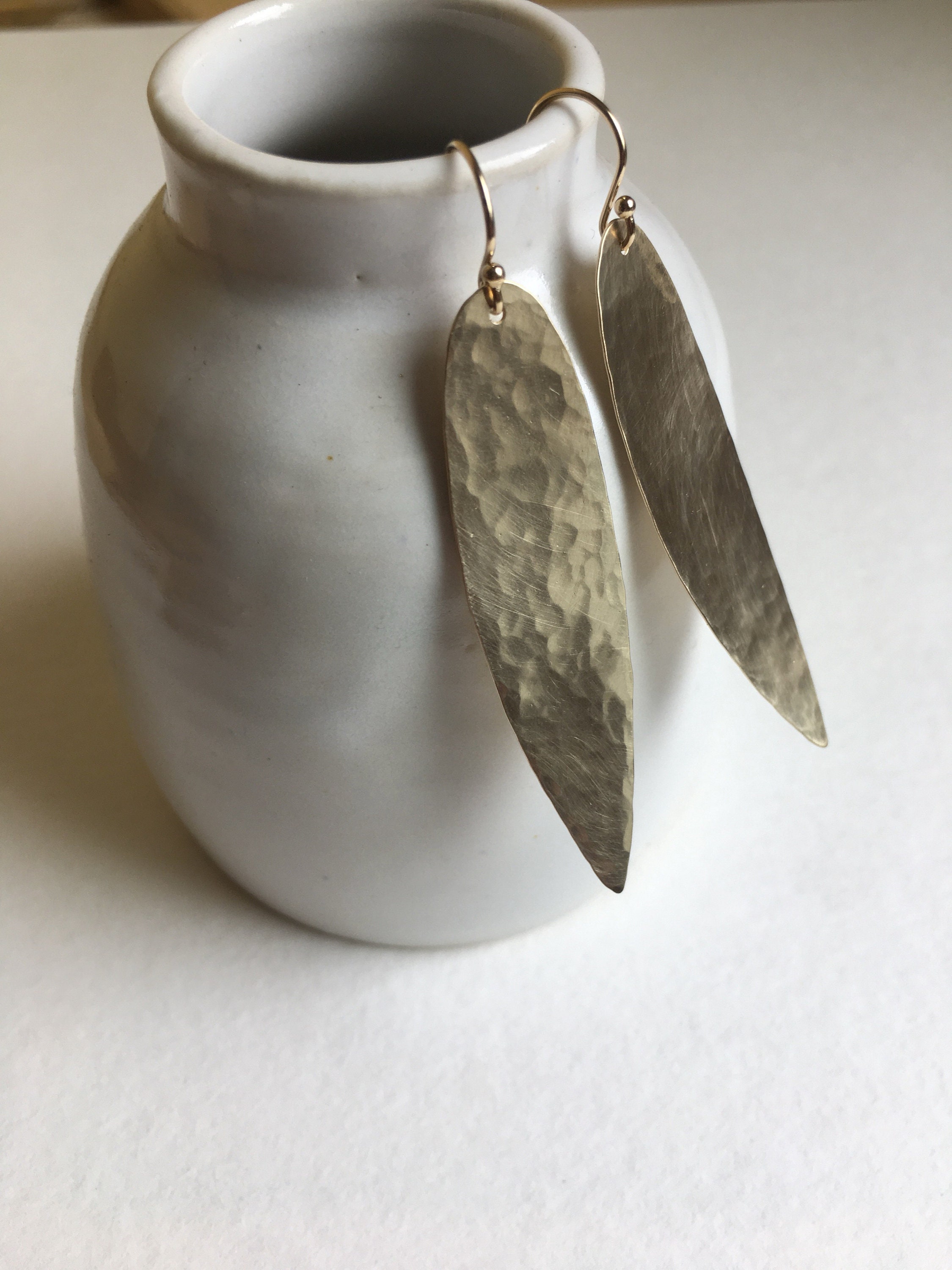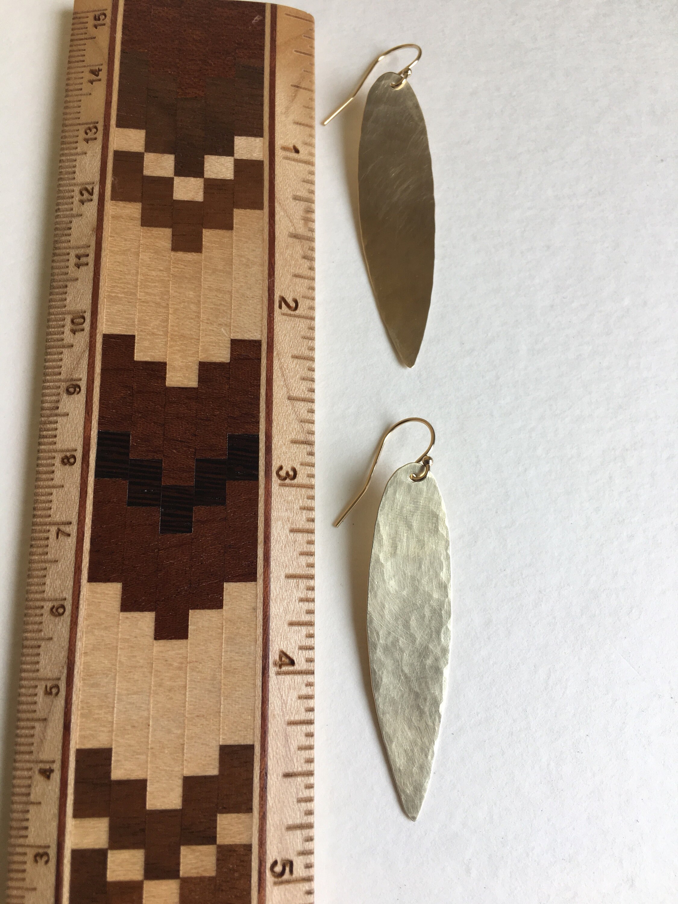 Shipping is no longer guaranteed by Dec. 25th at this point. I will get orders out as quickly as I can but please be aware that arrival time may be delayed due to carrier overload. If you are in Ithaca area you can arrange local pickup at Handwork Coop or Sundrees, msg me for details. Thanks for understanding. Hammered Brass Leaf Shaped Earrings