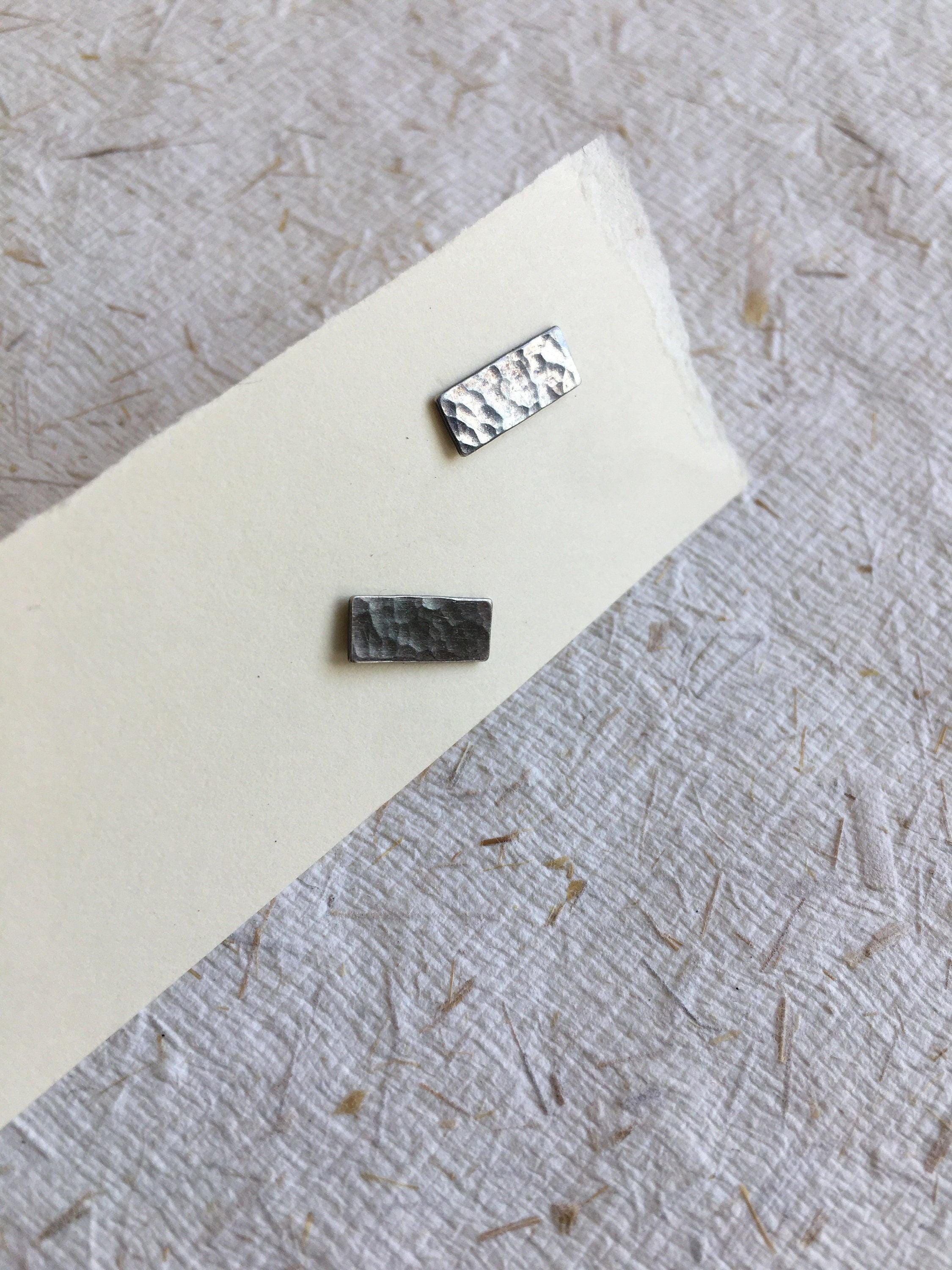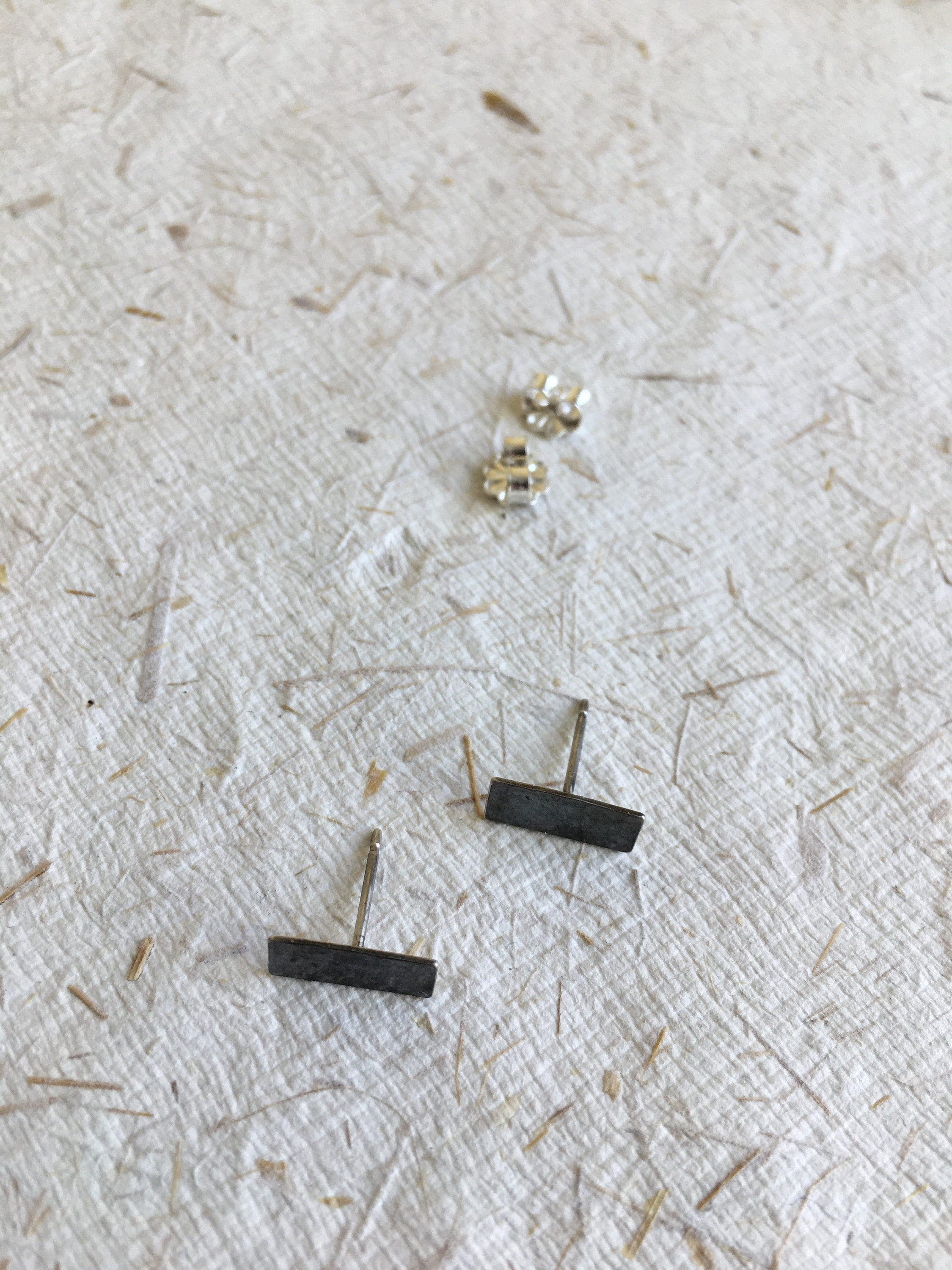 Silver Rectangle Studs, Black Oxidized Earrings, Minimalist Posts
