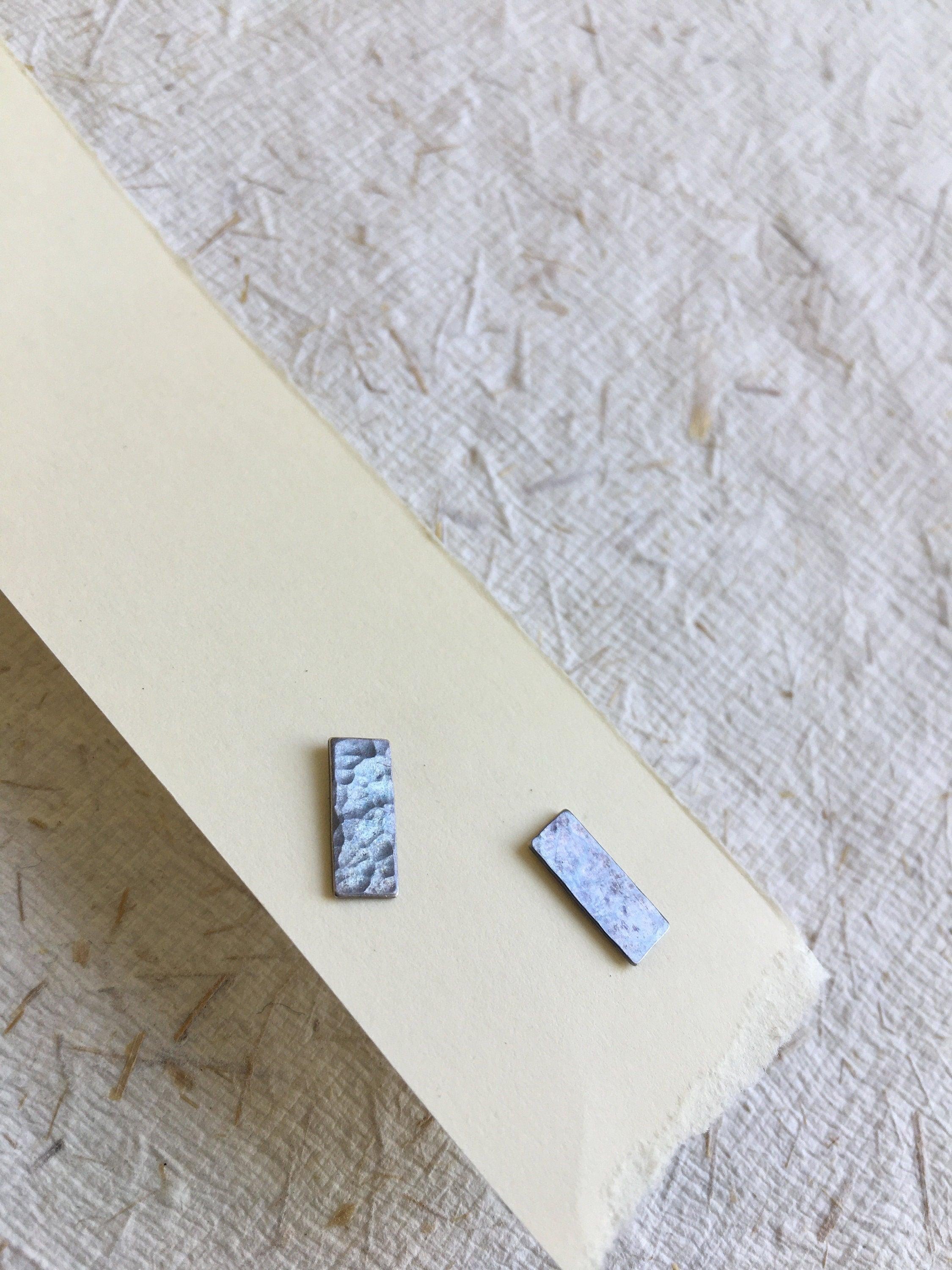 I handmade these simple, hand hammered and soldered sterling Silver Studs. They are very lightweight and are great for everyday wear. They are entirely sterling silver including the backs.